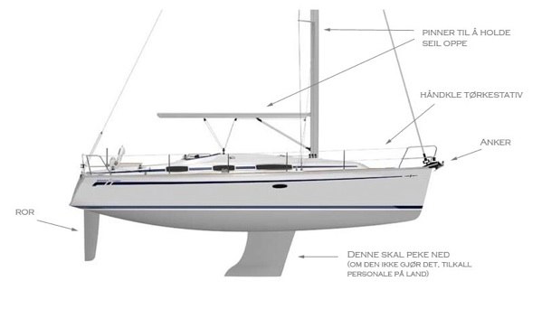 Inni er båten litt sånn som hjemme. 2-4 soverom, to bad, kjøkken og sofakrok. Om du vil imponere dine venner med nautiske kunnskaper, kan du referere til kjøkkenet som “byssa” og gulvet som “dørken”. Høyre og venstre i båt kalles henholdsvis for styrbord og babord, og når det er mørkt ute merkes båtene med rød lanterne på babord side og grønn på styrbord.